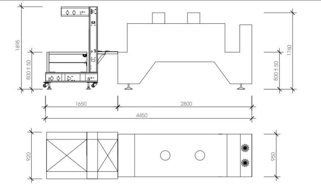 - Kích thước máy: 2800 x 950 x 1760 mm