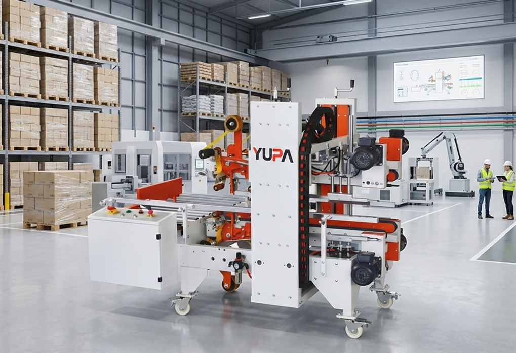 Máy dán thùng gập nắp tự động Model YUPA-5050 là thiết bị đột phá giúp hoàn thiện quy trình đóng gói khép kín mà không cần sự can thiệp thủ công của nhân công. Với cơ chế thông minh tự động gập 4 nắp thùng carton trước khi dán băng keo hai mặt trên và dưới, máy đảm bảo kiện hàng luôn vuông vắn, chắc chắn và có tính thẩm mỹ cao.